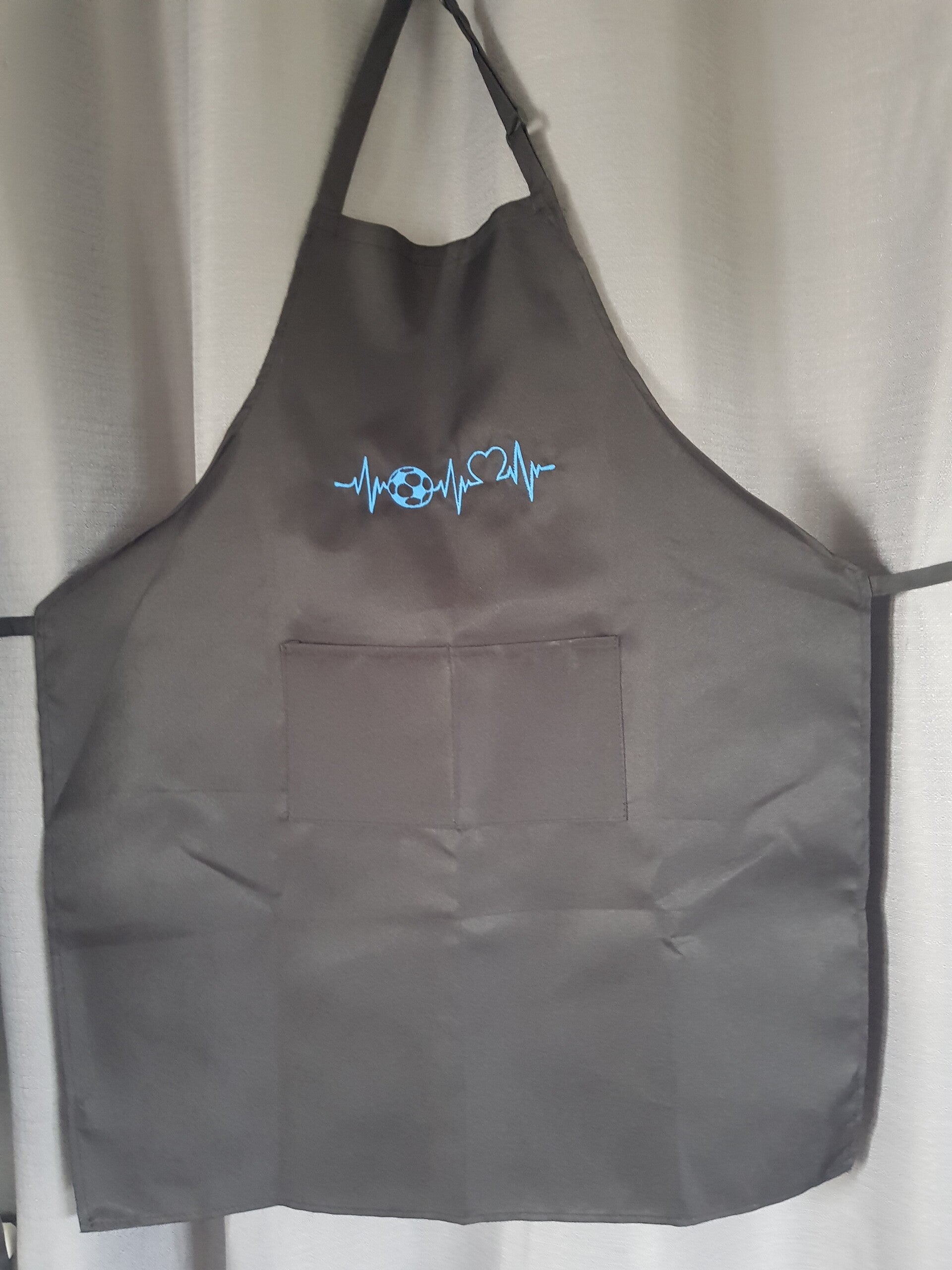 Bestickte Grillschürze mit 2 Brusttaschen für Fußball Fans.